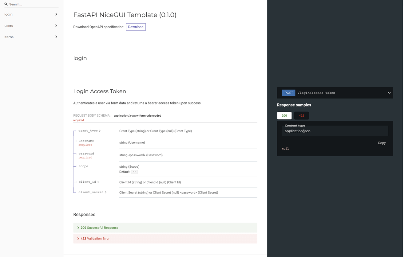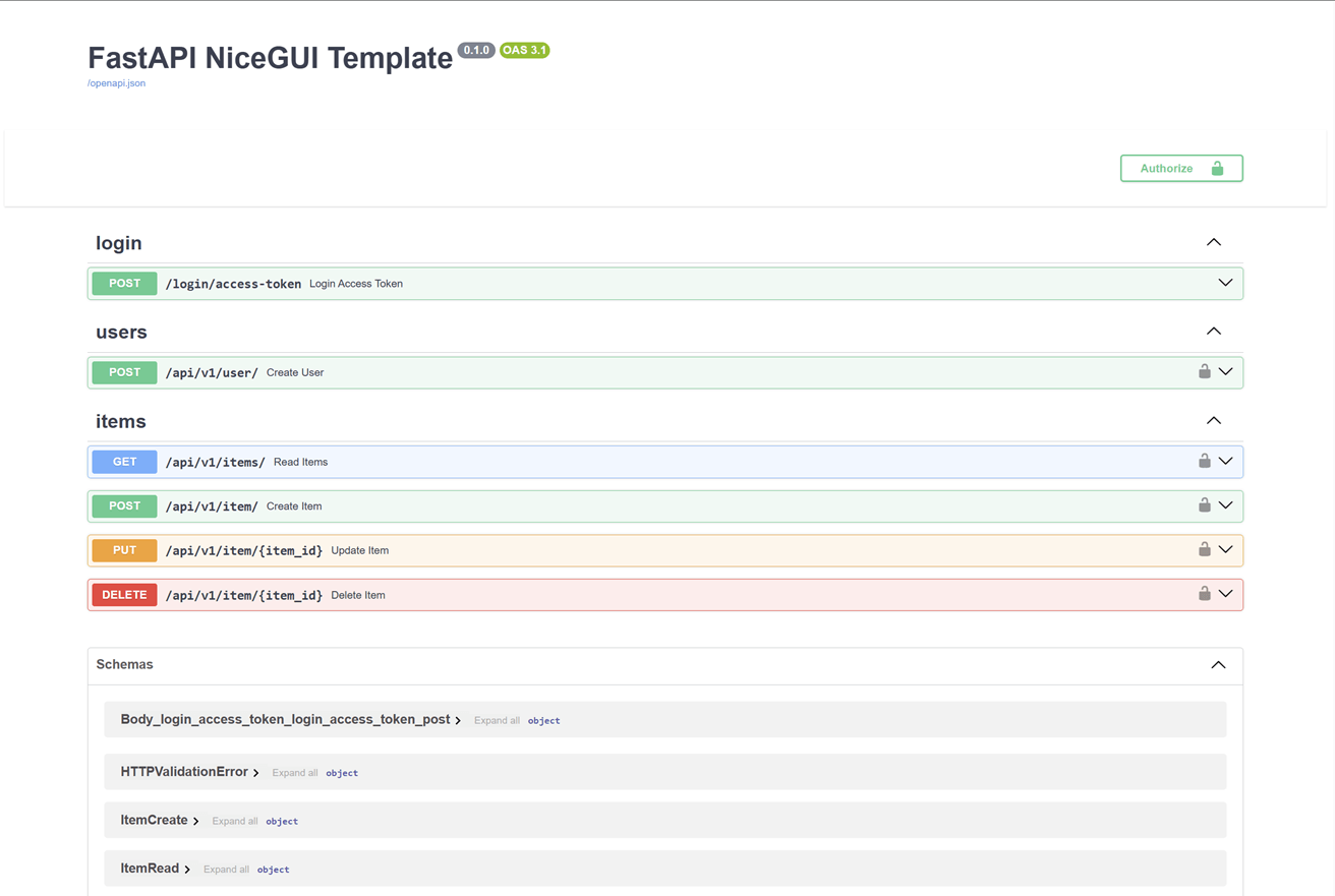 To provide a concrete example of this architecture, the reference repository at jaehyeon-kim/nicegui-fastapi-template contains a fully functional application. Let’s examine its structure and key components.